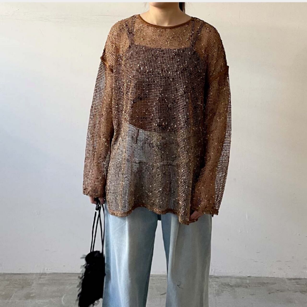 ざっくりとした編み目とニュアンス柄が特徴で、軽やかな抜け感を演出します