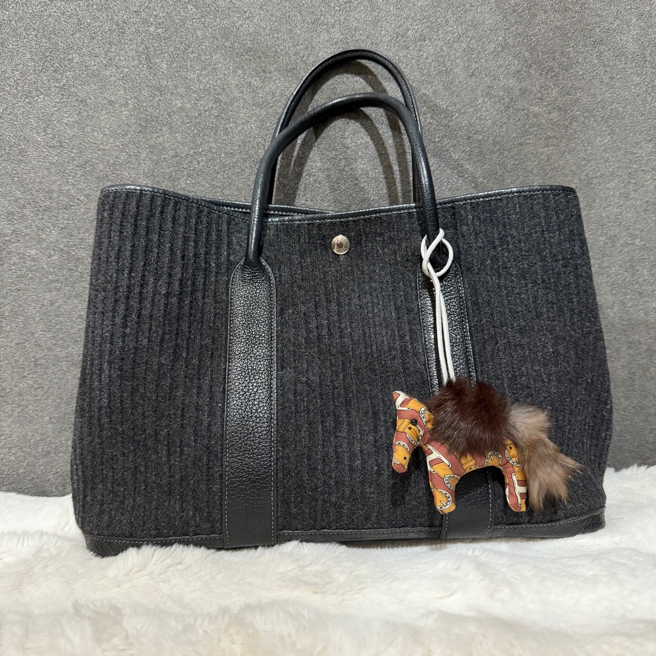 ハンドメイドお馬チャーム シルクネクタイ×ラビットファー