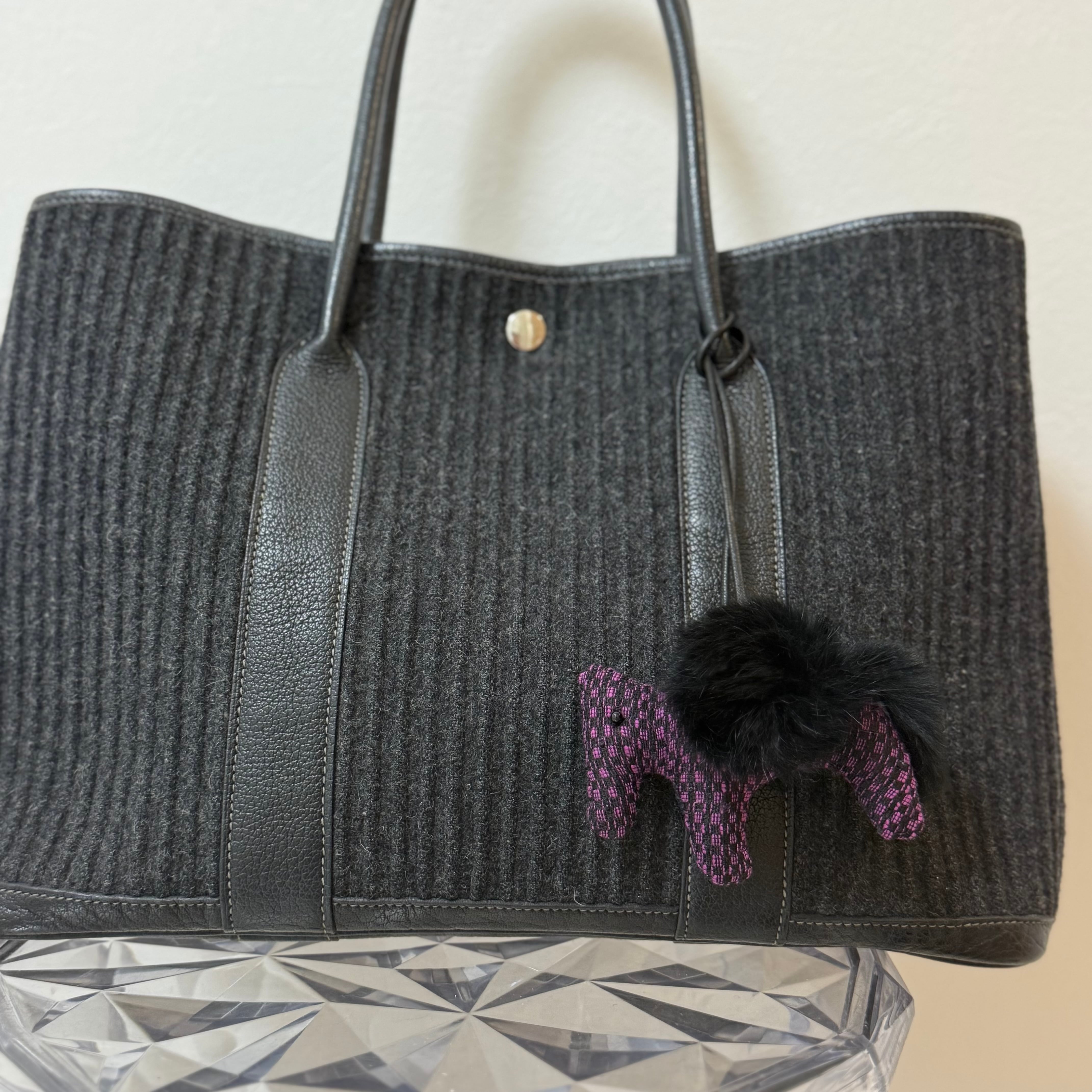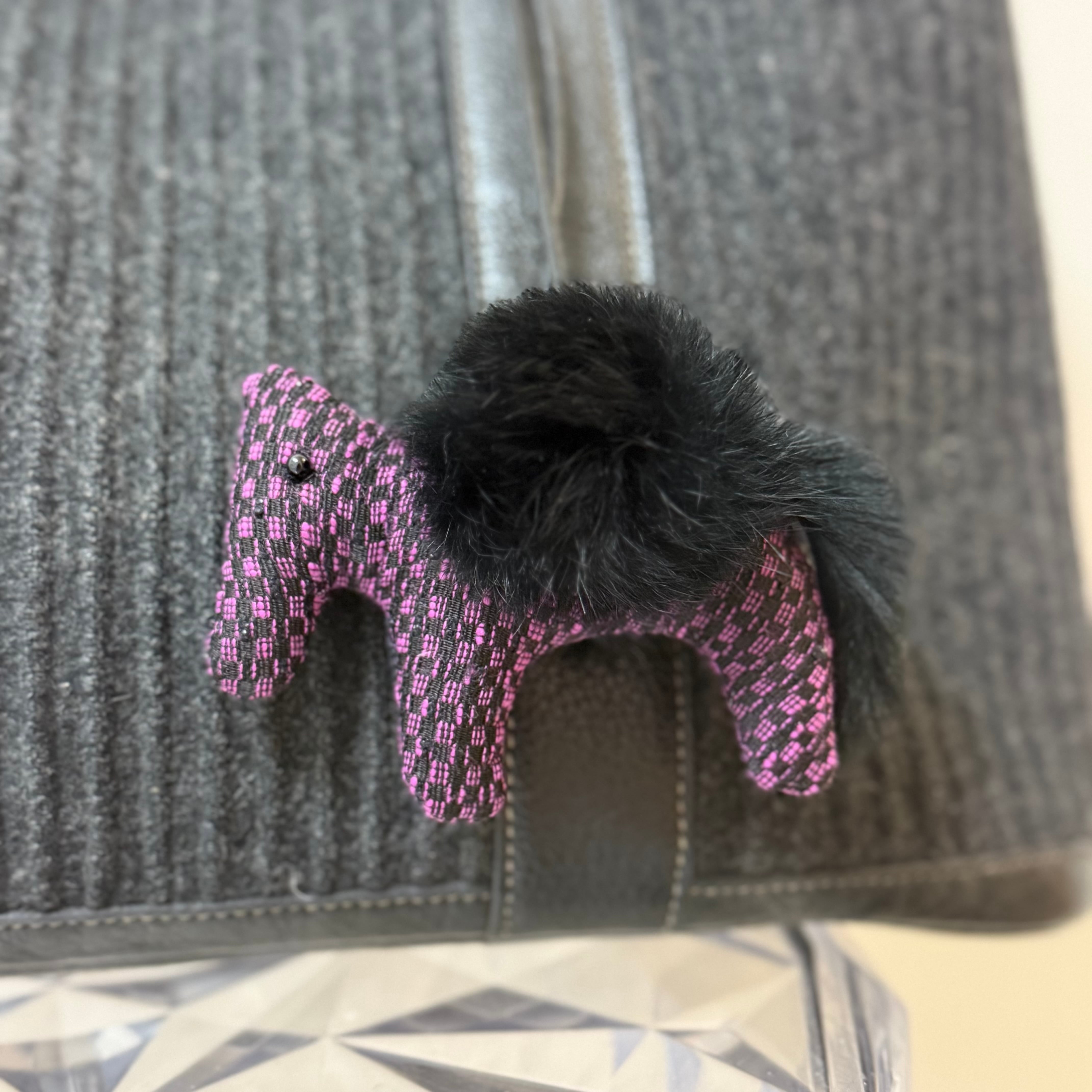 ハンドメイドお馬チャーム ツイード生地×ラビットファー
