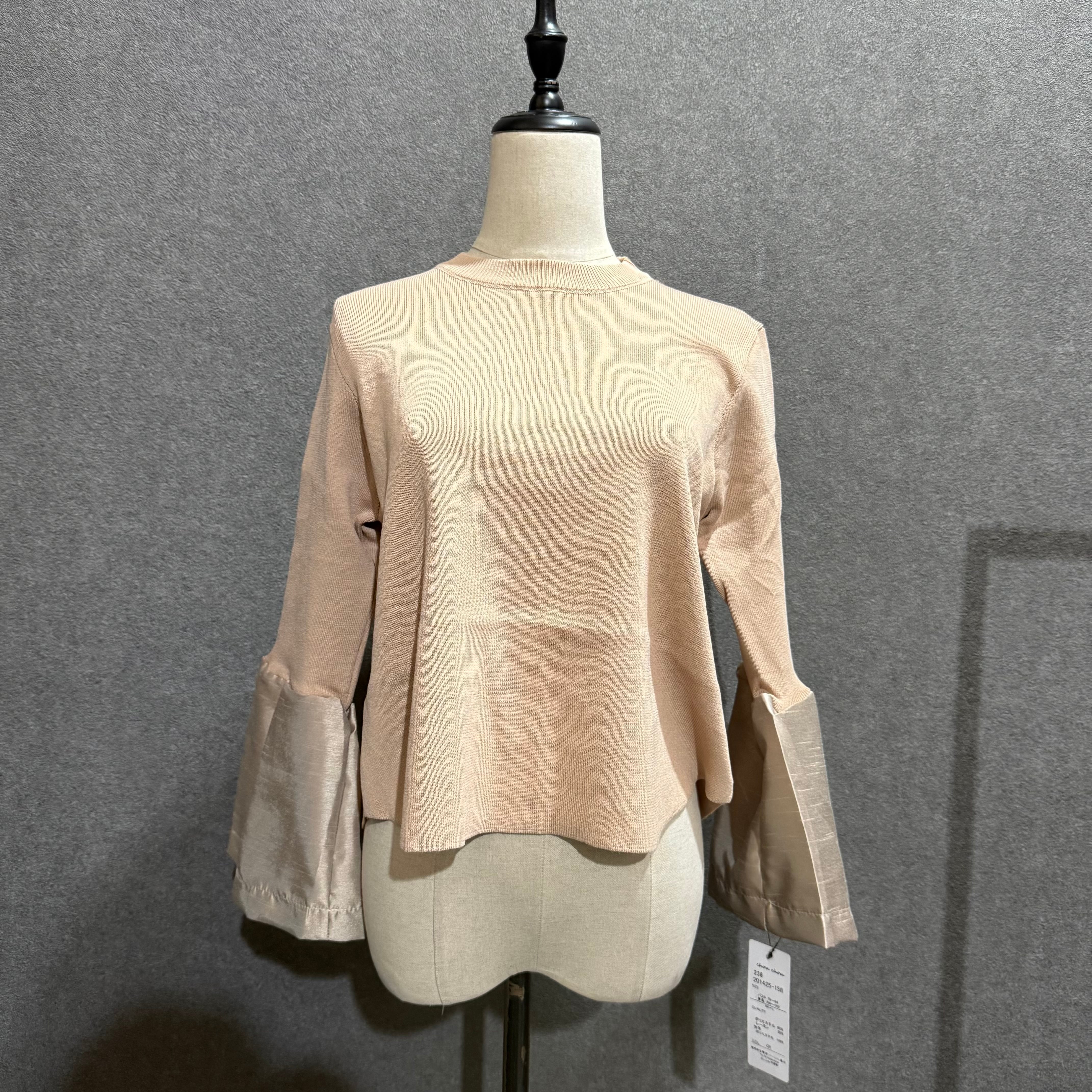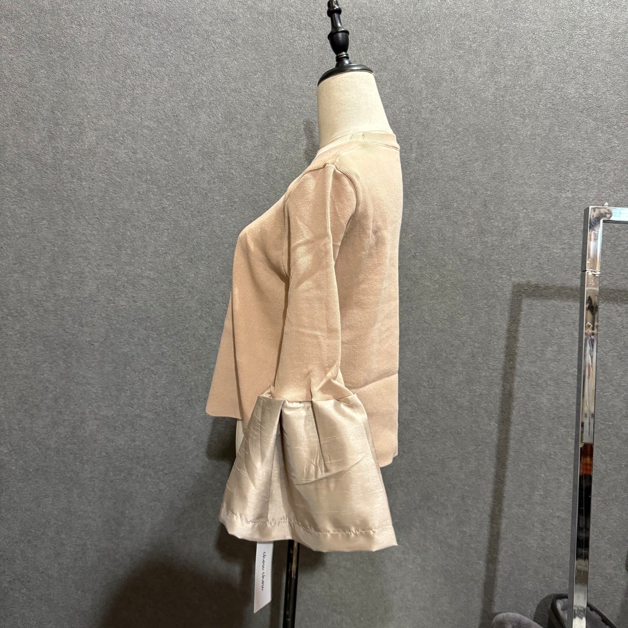 ■【serect ONE】袖ぽわんリブニット ベージュ ベル袖異素材ニットの特長: