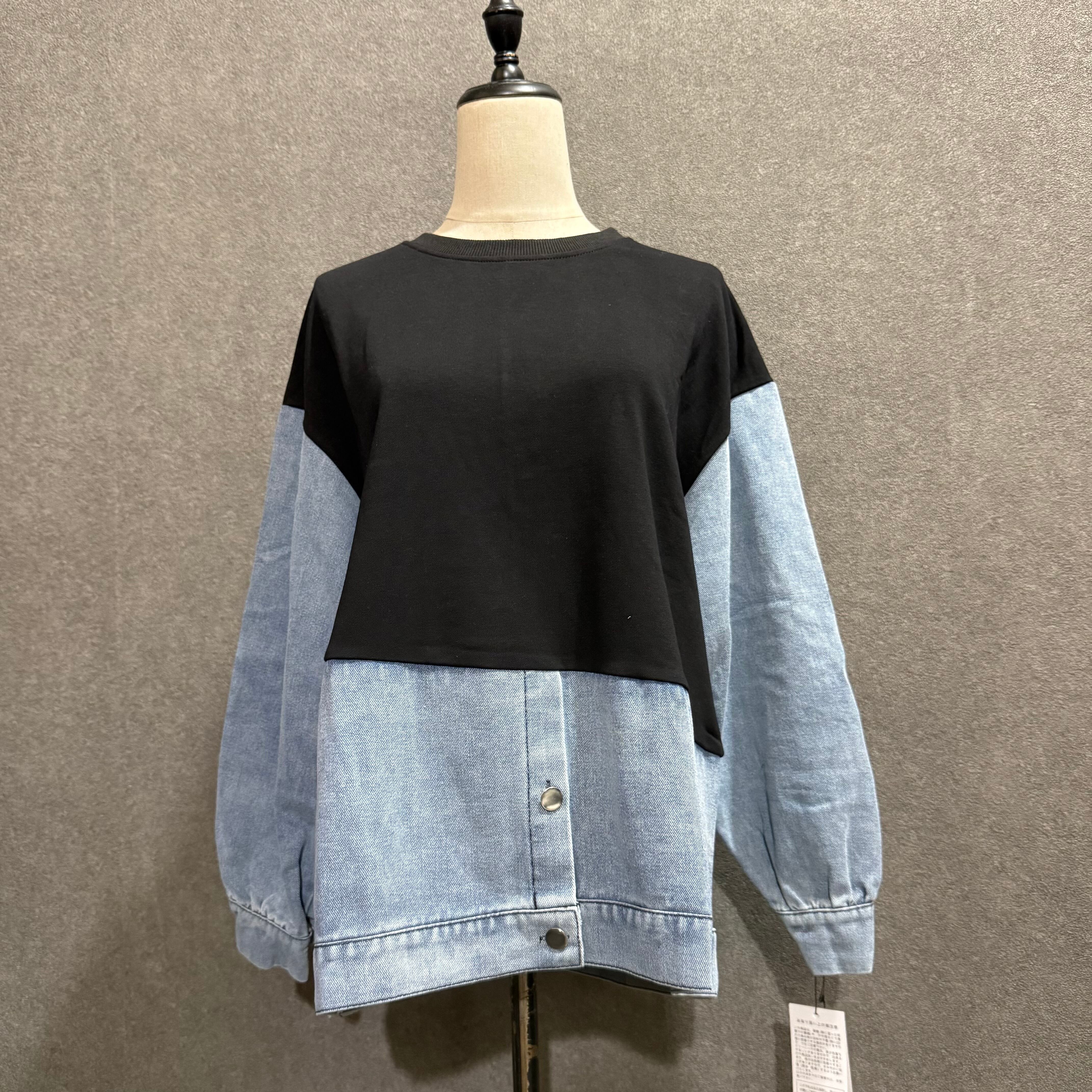■【serect ONE】デニムドッキングスウェットトップス 異素材トップス 3カラーの特長: