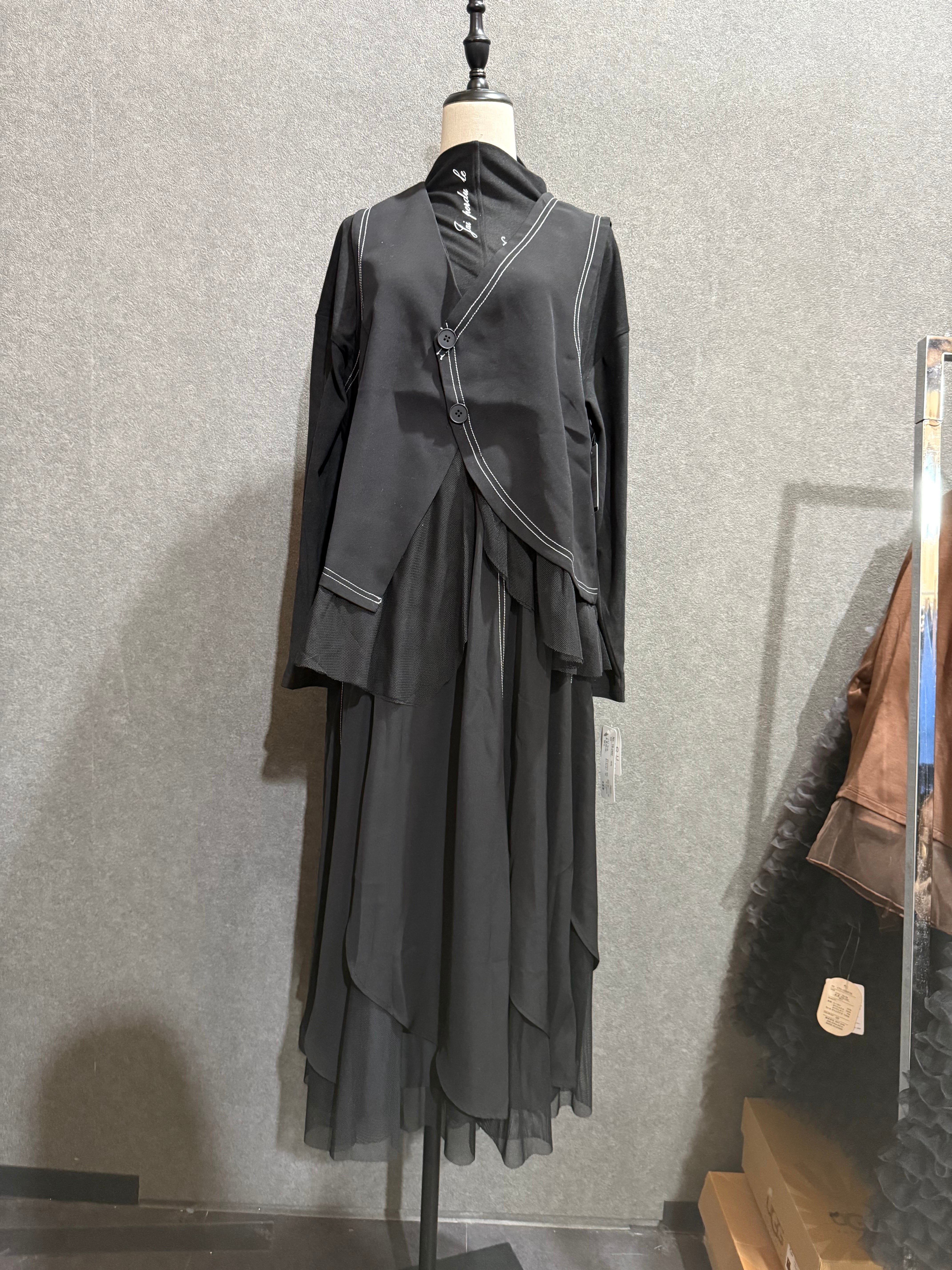 ・このステッチデザイン異素材ベスト+スカートは、異なる素材の組み合わせが個性的な魅力を引き立てるセットアップです!ステッチワークがアクセントとなり、シンプルながらも洗練された印象を与えます。チュールとアシメのデザインがどこから見てもオシャレで人と被らない素敵なデザインです。合わせてインナーに入れてる英字プリントのトップスは別売りです。