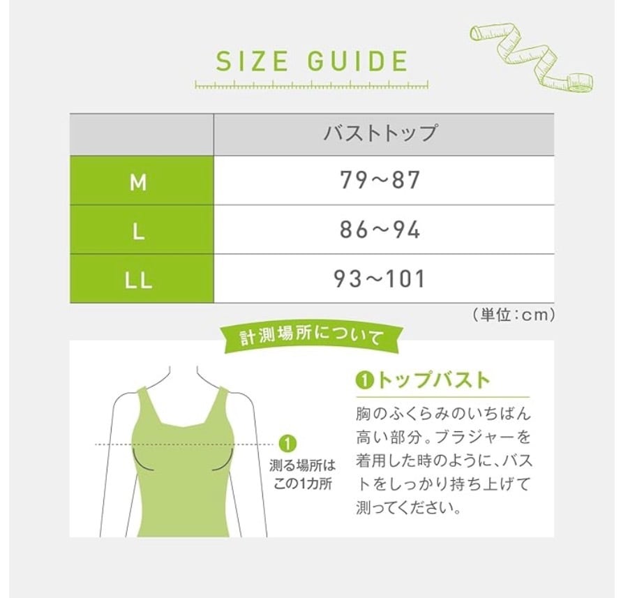 ※胸の一番ふくらんでいるところ(=トップバスト)でサイズを選んでください。