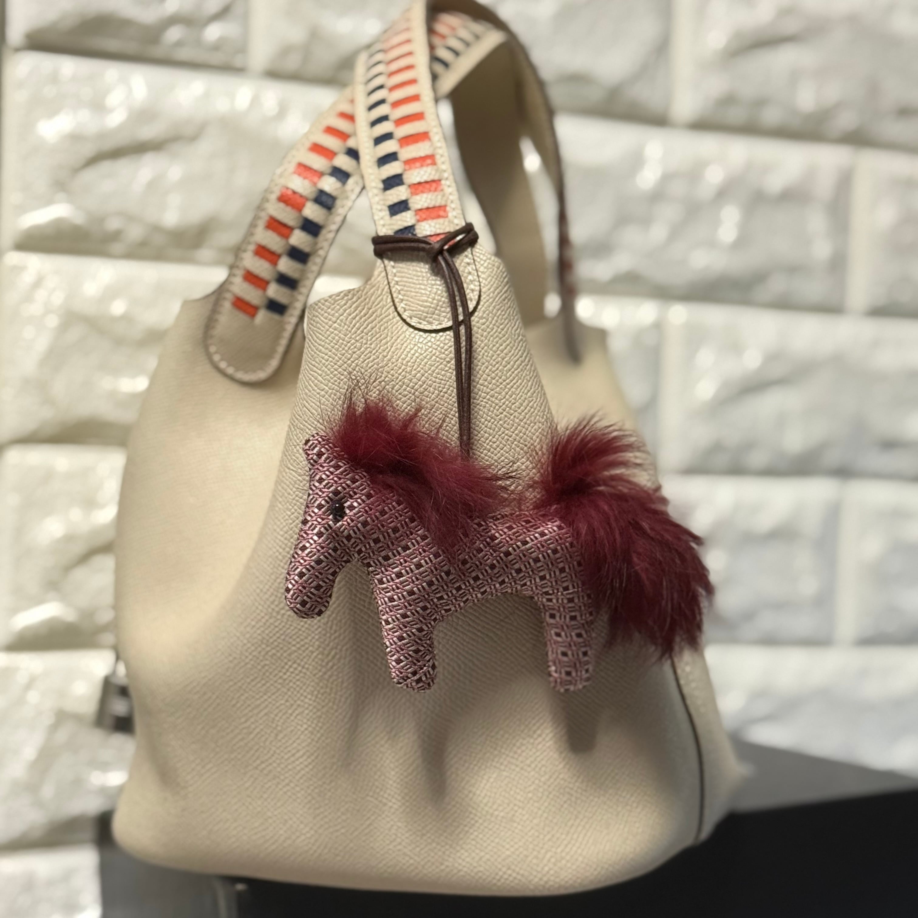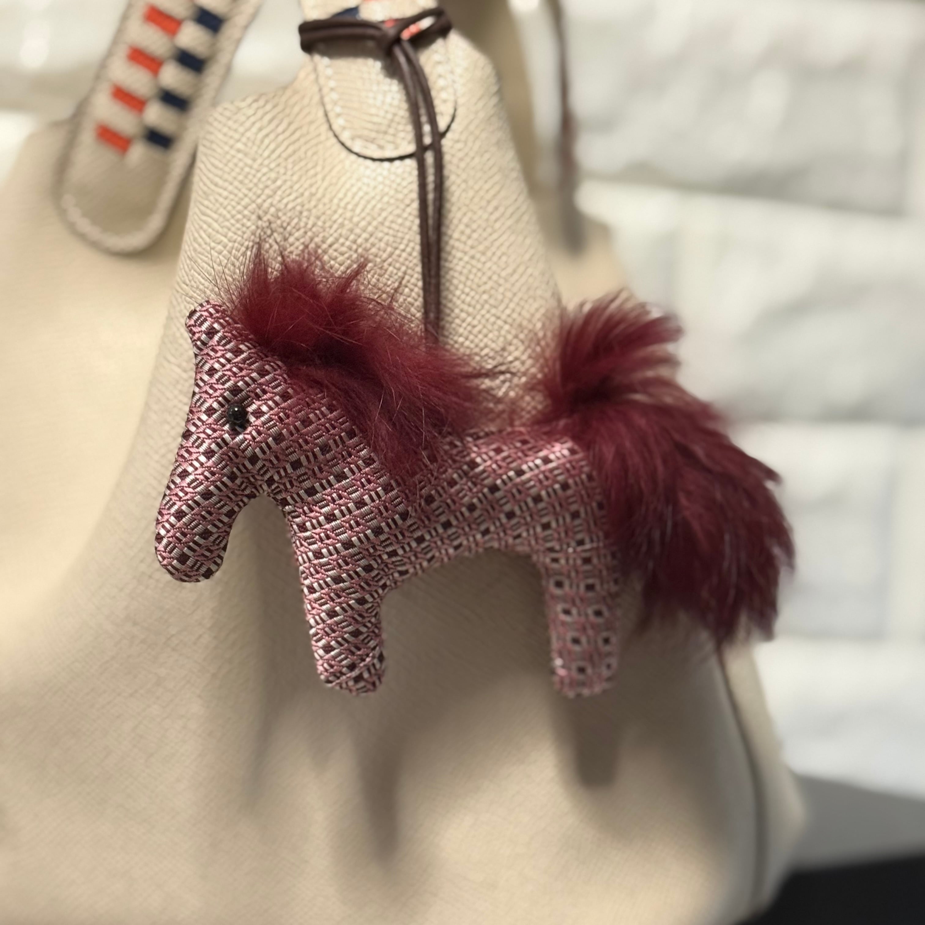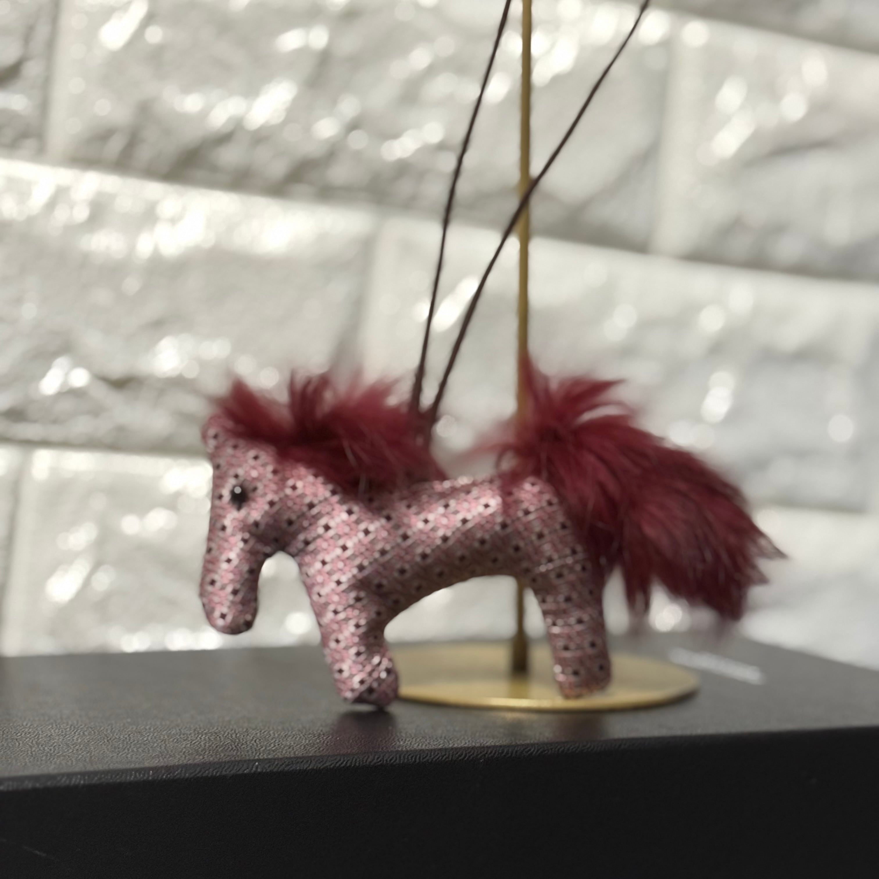 この優雅なお馬チャームは、あなたのバッグやポーチに洗練された魅力をプラスするアイテムです!シルクとラビットファーの組み合わせが特別な雰囲気を醸し出しています。