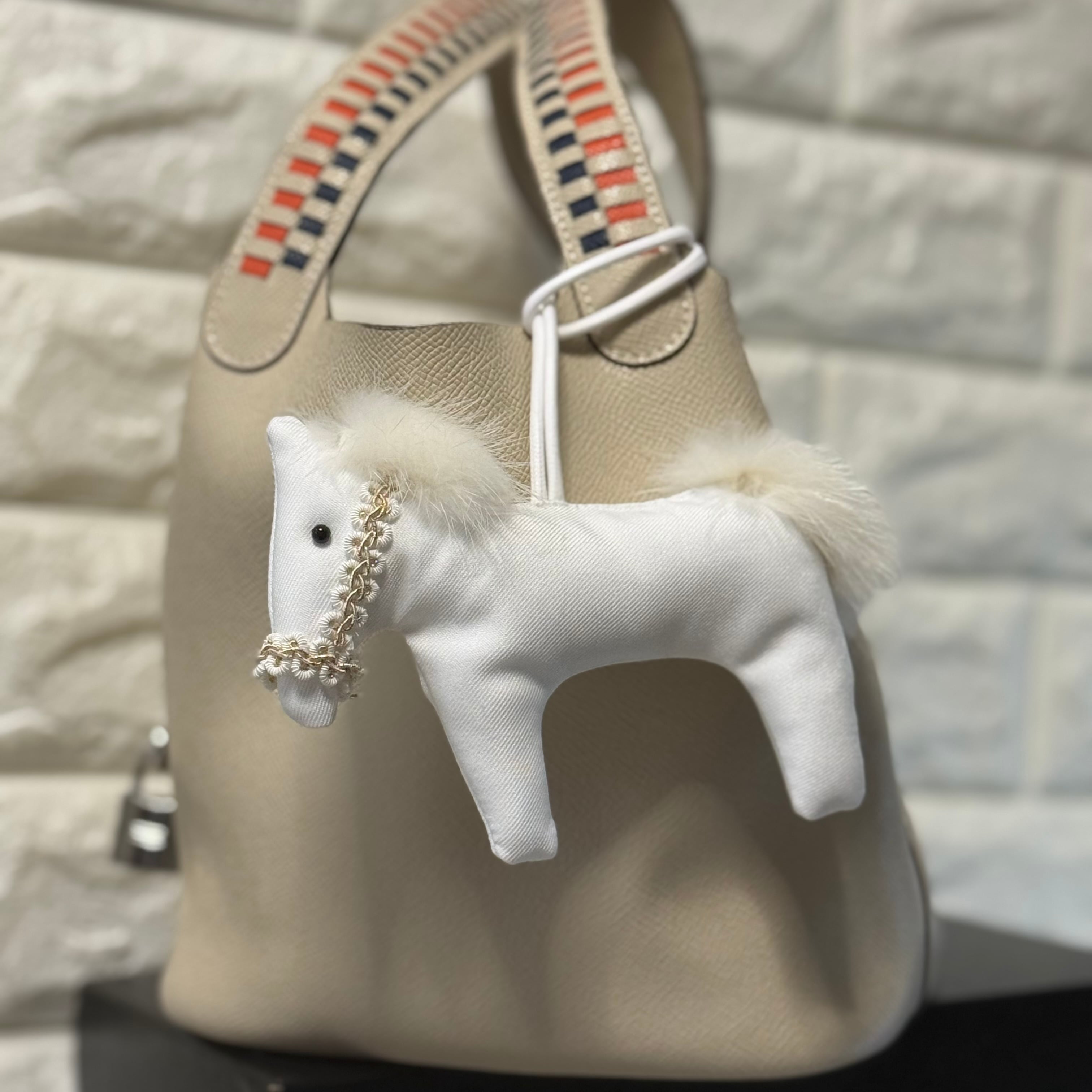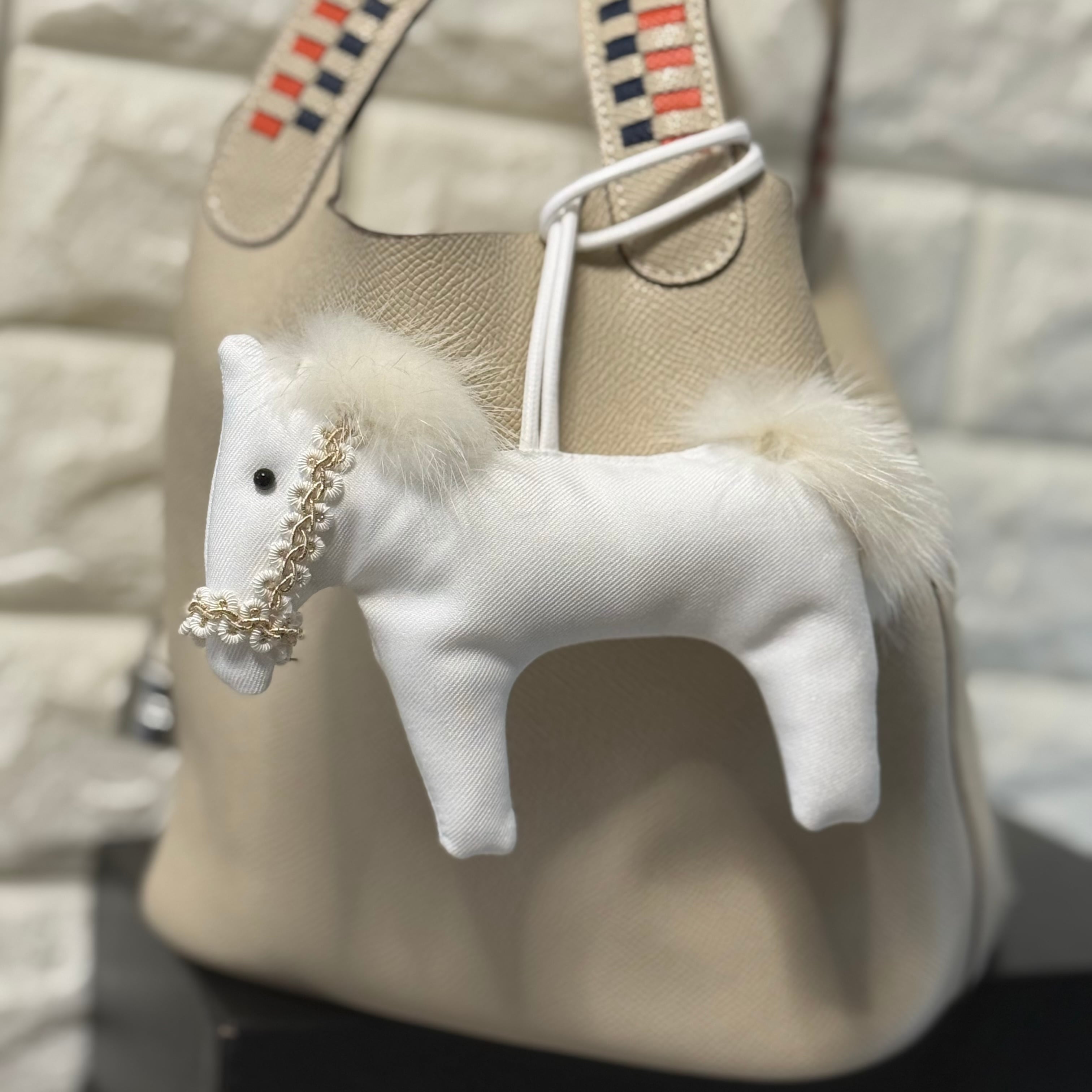 このエレガントな白馬チャームは、あなたのバッグやポーチに華やかなアクセントを加えるアイテムです!柔らかなミンクファーの贅沢な質感が、一層の高級感を演出しています。