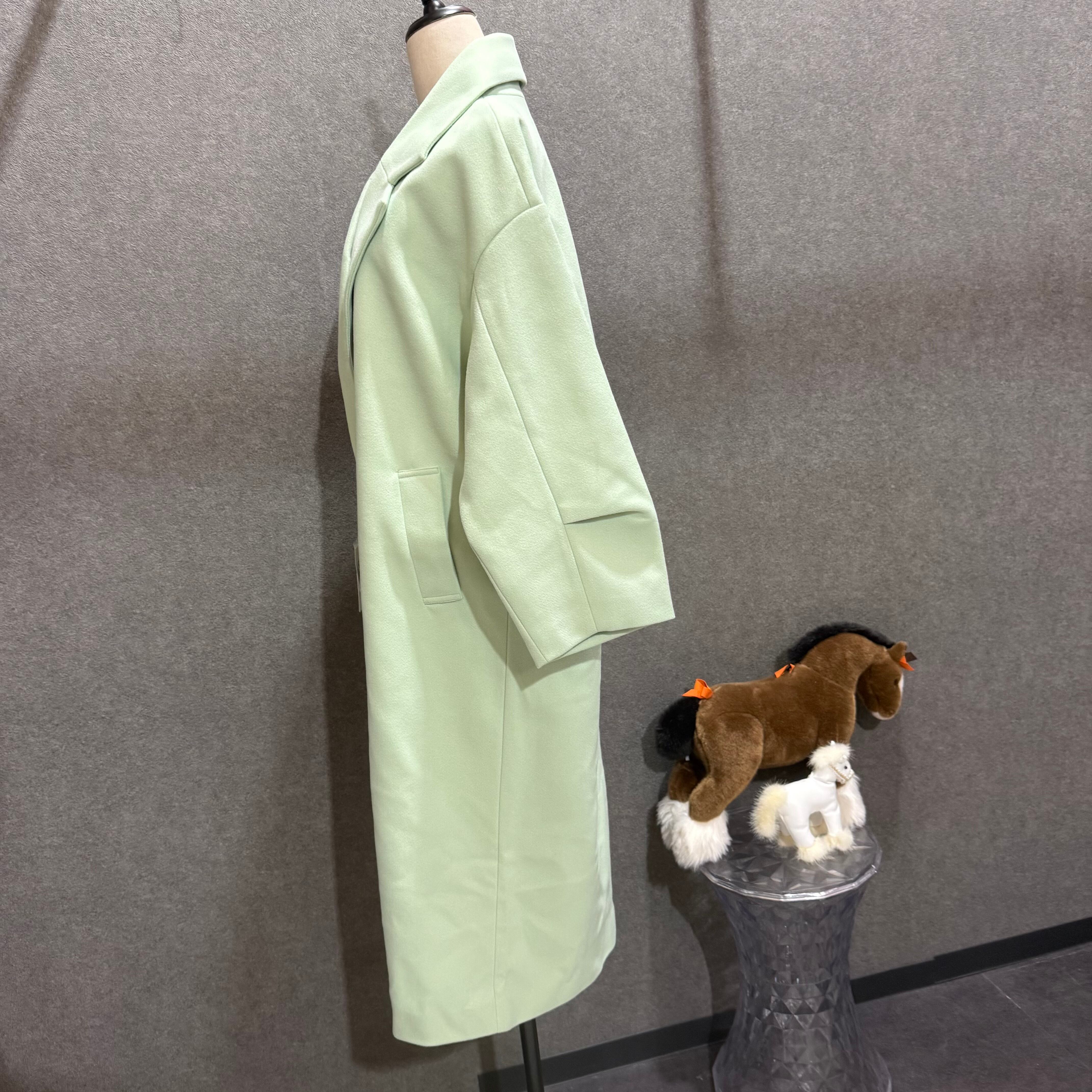 【select ONE】ニットモッサ袖タックチェスターコート(ライトグリーン・オフホワイト) アウター|長袖