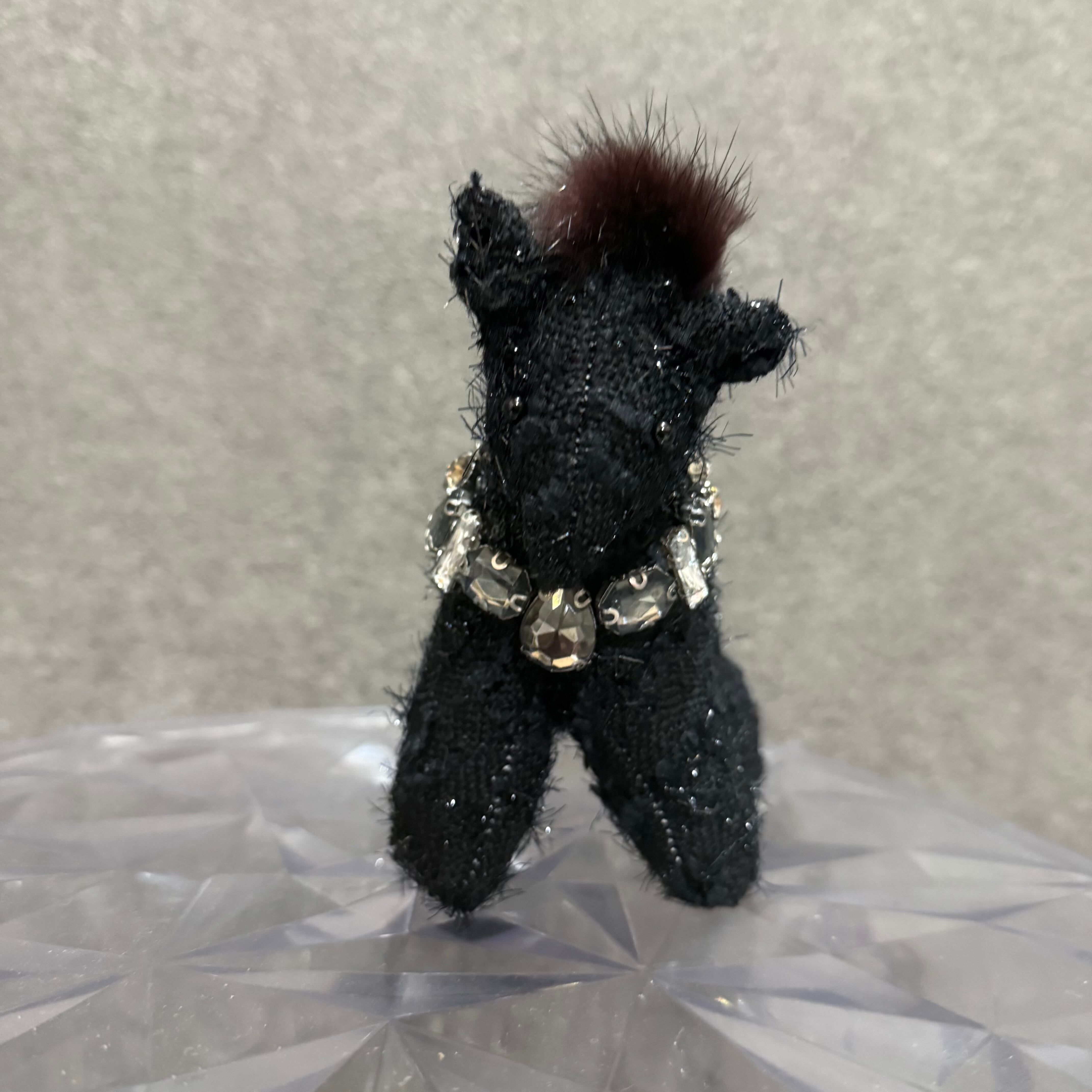 キラキラ黒ツイードにビジューとミンクで送信しました。