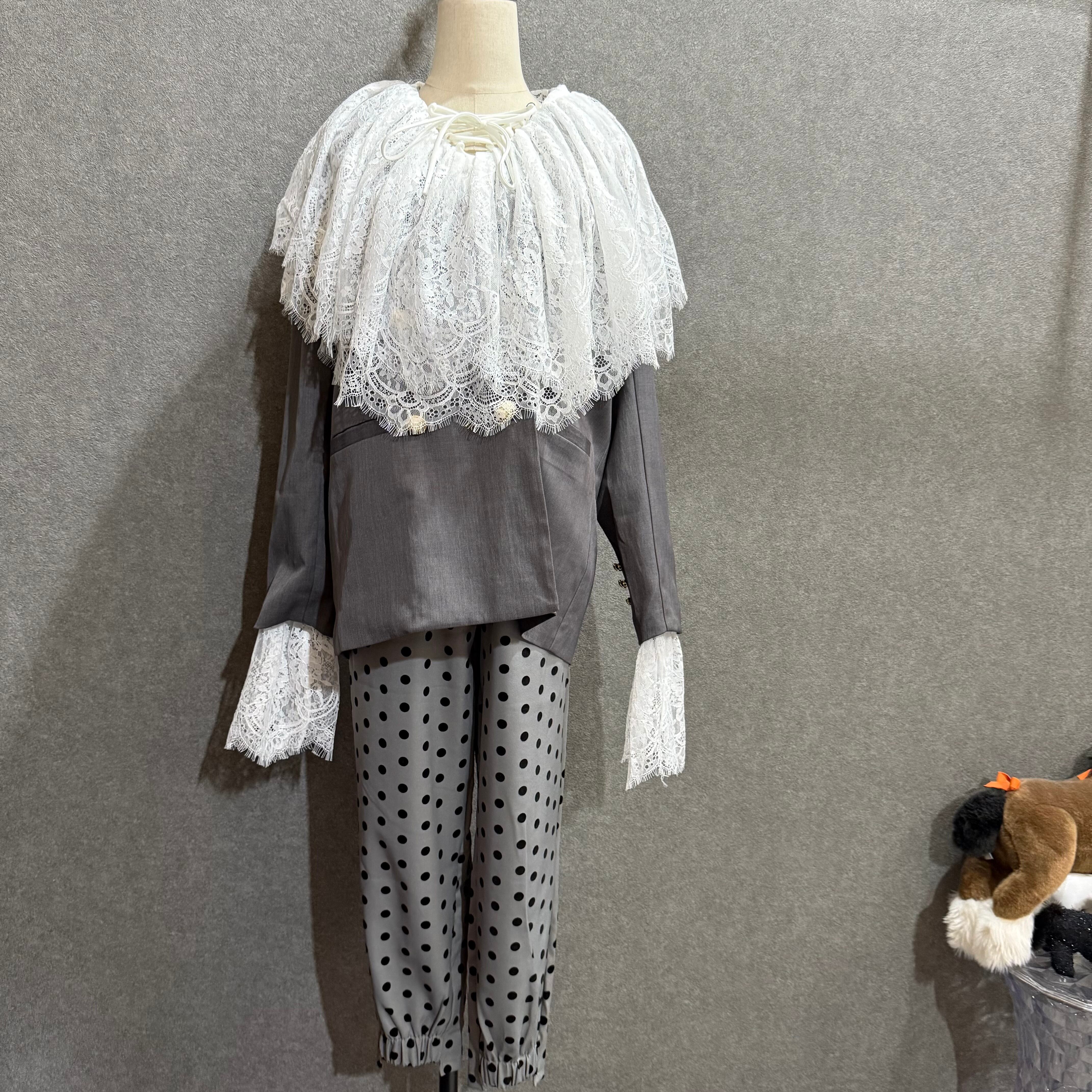 顔まわりを華やかに見せるレースのビッグカラーが主役のブラウス。