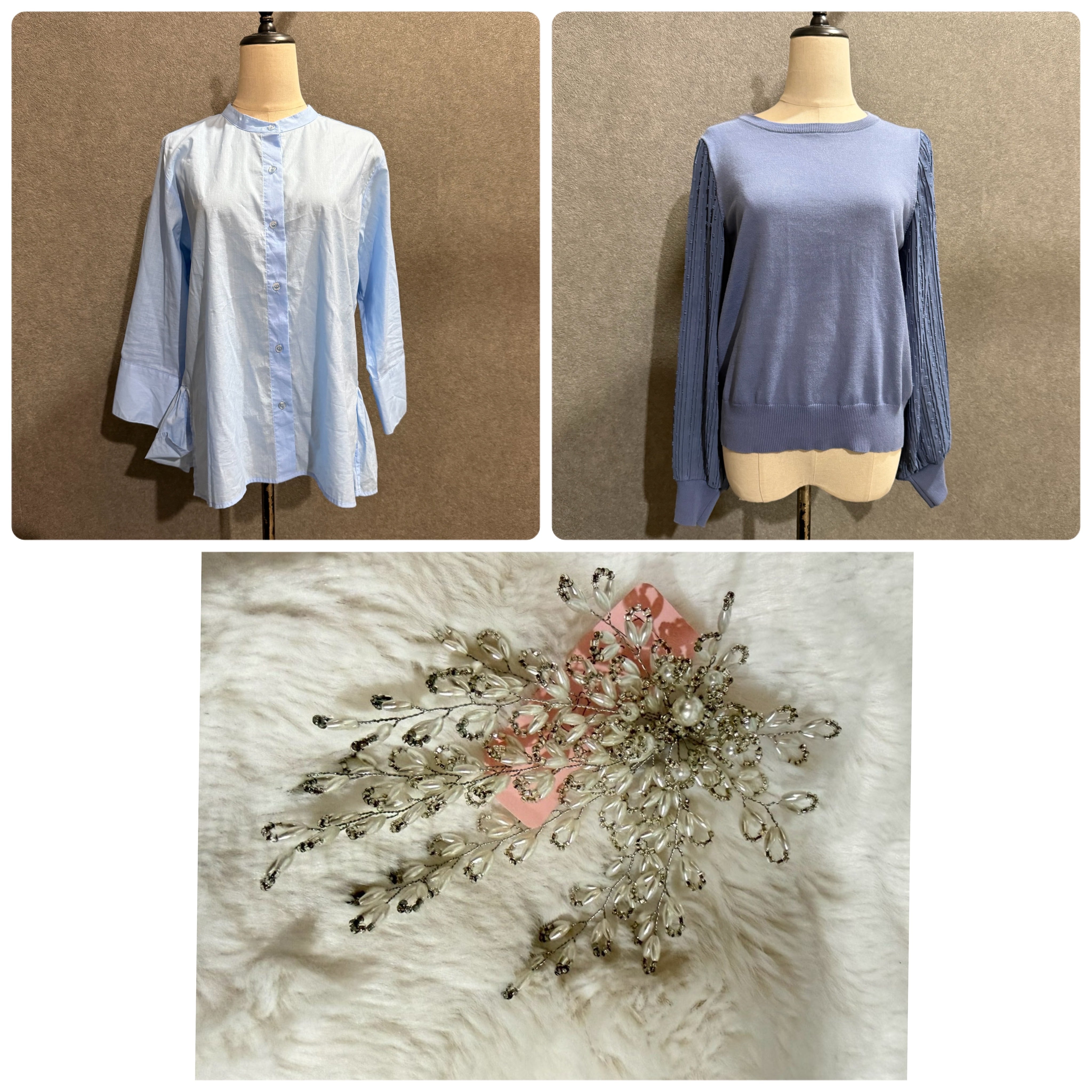 パールブローチ 500 ブラウス 2,000 異素材ニット 2,000
